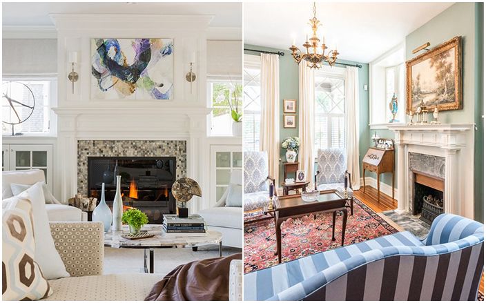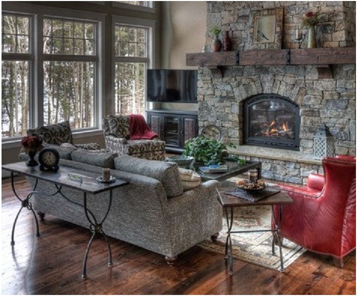 17 приголомшливих інтер’єрів заміських віталень з кам’яним каміном